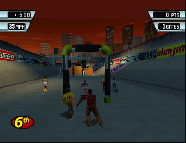 It’s funny how the cultural aesthetic of the time can change in a few years (Or could change. Our current culture halted toward the end of the 00s and hasn’t changed since). In the three years between 2xtreme and 3xtreme, the edgy 90s graffito look has been ditched for something a bit more Y2K. Really though, the look and feel of the game is all that’s really changed between the two entries. It’s still the same underneath, with the through-the-gates points system and push-your-rival-over mechanics.