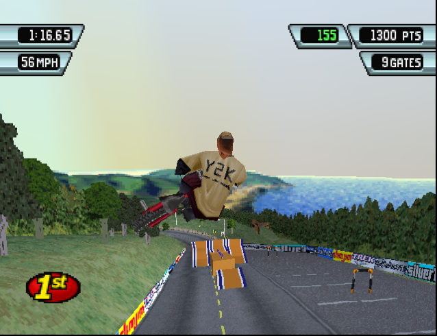 I have a level of respect for early PS-era games like this. They were made for you to kill some time with a simple loop. There’s no need for high concept stuff. The game could have mixed it up a bit more with some alternate tracks (despite there officially being twelve, it’s only really four, as each primary track has three variations which are almost identical) or more of a difference between the mechanics behind cycling/skating/snowboarding etc, but the game largely achieves what it set out to do.
