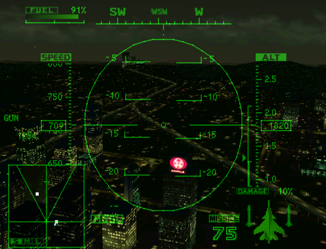 Well, I was pleasantly surprised. It’s a fun arcadey console flying game. There is some sort of plot in there, and the game does have rather fancy ‘briefing’ sections where a smooth voiceover explains the context of each level, but it’s all rather vague and is little more than set dressing. In 1997 you didn’t need a reason to blow up buildings and fighter jets; just get out there and start dropping lethal ordnance from five thousand feet.