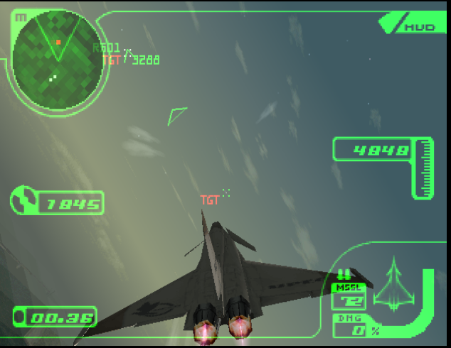 I went into this expecting an improvement on Ace Combat 2. I did not get it. All you can say about it is ‘more of the same’. Aside from changing the control scheme to make the left-right buttons roll the aircraft rather than yaw and thereby not change forward direction, making manoeuvring more fiddly, and the UI look and feel changing to a very Y2K circles-and-blobs scheme, it really is just the same game. The plot is the same, the levels are the same, the enemies and objectives are the same.