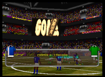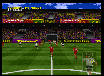 It gets a few things right. The gameplay is indeed rendered entirely in (wince-inducingly blocky) 3D, the animations work, and Barry Davies on commentary is actually pretty spot on. The game wants to show off the 3D environment - its main selling point - so there are a multitude of camera angles. The default ‘action cam’ view, while being terrible to actually use, really does bring you in ambitiously close to things.