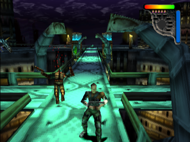 The lore behind Apocalypse is interesting. Developed by Neversoft and piggybacking on tooling developed to port cult PC laser-em-up MDK to PS1, it seems Bruce Willis was roped in and paid the obligatory millions originally to feature as an AI-controlled sidekick, before the idea was inevitably binned when publishers realised it would be stupid to have Bruce Willis in your game, but have the player play the role of some random guy. Eventually what we’re playing here turned into the legendary Tony Hawk’s Pro Skater and equally legendary Spider-Man.