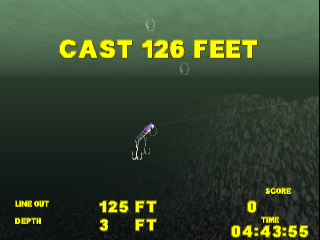 With Bass Landing, despite it not being all that fun, you could still see there was a sort of ‘by-fishermen-for-fishermen’, enthusiast vibe to things. All that seems rather absent here. There’s no lengthy ‘training’ game mode where a leggy anime woman playfully admonishes you for struggling with your tackle, no fiddling around with a choice of cast options, no funky music. No, it’s more like a cut-down version of Action Bass, where one has to wonder whether the only goal was to put this picture in front of you as often as possible: