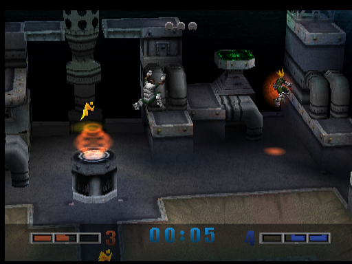 The combat is underbaked and would have been improved if there was more distinction between characters in terms of moves and capabilities (a la Smash Bros), but as it is they’re all a bit samey. What ends up happening is running around hammering the X button to hop (so you can avoid getting tagged) and trying not to get stuck on the geometry. Providing alternative ways to win by beating up your opponent would have been another improvement.