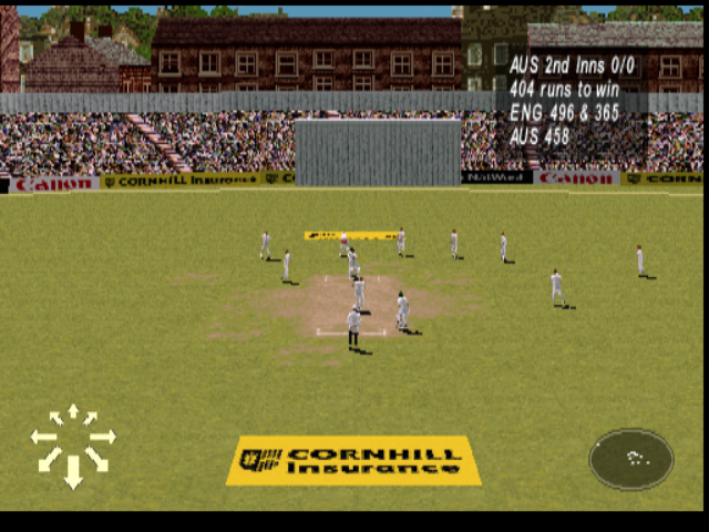 Bowling lacks a bit of depth. You control a small ring which swoops around the pitch as if it were on ice, and press X when it passes over your desired spot to lock in where your ball is going to pitch. Alternatively, press circle for a slower delivery. You also have the option to press triangle for a ‘quicker ball’, but I don’t think this actually does anything. Interestingly, the manual will warn you about trying too many quicker balls, as you run the risk of overstepping the line and bowling a no ball - this is actually impossible in the game. That’s about it really. Bowling can be pretty dull, particularly when you’re bowling on a deck that’s as flat as a pancake and the opposition are 200-0. But that’s cricket for you. I don’t know really how you could make it that much more interesting, but a few later cricket games tried and mostly failed too.