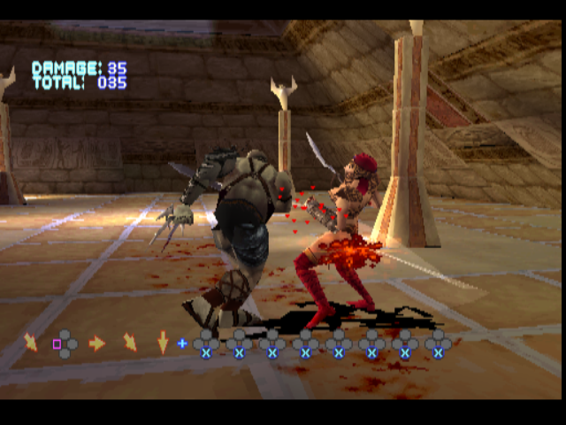 You can run around the arena by holding down a button, which is a rare similarity to Bushido Blade. This introduces an element of variety and strategy to what you’re doing, as you can run off to grab some health boosts if you’re losing, or try and lead your opponent into some of the parts of the environment that do damage.
