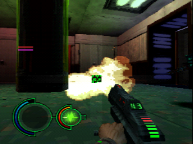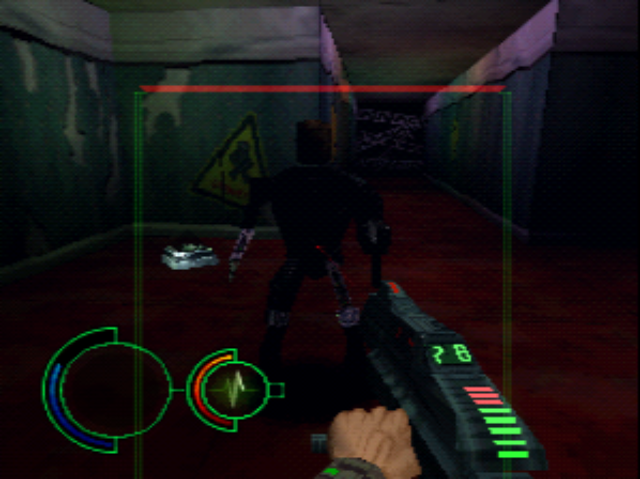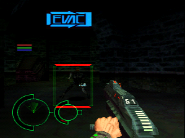 Unfortunately, outside of one or two (and it really is one or two) exceptions, PS1 FPS games were all a bit lacking. Analog controls hadn’t been figured out and the machine itself didn’t have enough juice to do it properly. You can see all the tricks in Tenka; narrow and winding corridors mean you never need to see (ie. render) more than a few feet in front of you, and dark lighting masks the dull textures. The gun looks cool but not much else does.