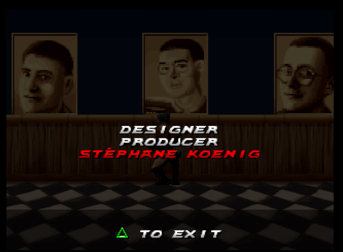 It gets old quite quickly. What is interesting is how it handles the ‘main menu’ and credits - it is a level in itself, where you run around a building with rooms serving as abstract delivery systems for the Options menu, next mission and so on. The ‘credits’ are found in a picture gallery.