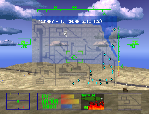 It definitely seems harder than its sequels (and obviously doesn’t look as good). I destroyed what I was sure was all my targets on level 1 but the level didn’t complete; I found myself pootling around the map for a good few minutes, finding nothing but bare landscape, before getting bored and cannoning myself with some force into the ground. I don’t like flying games!