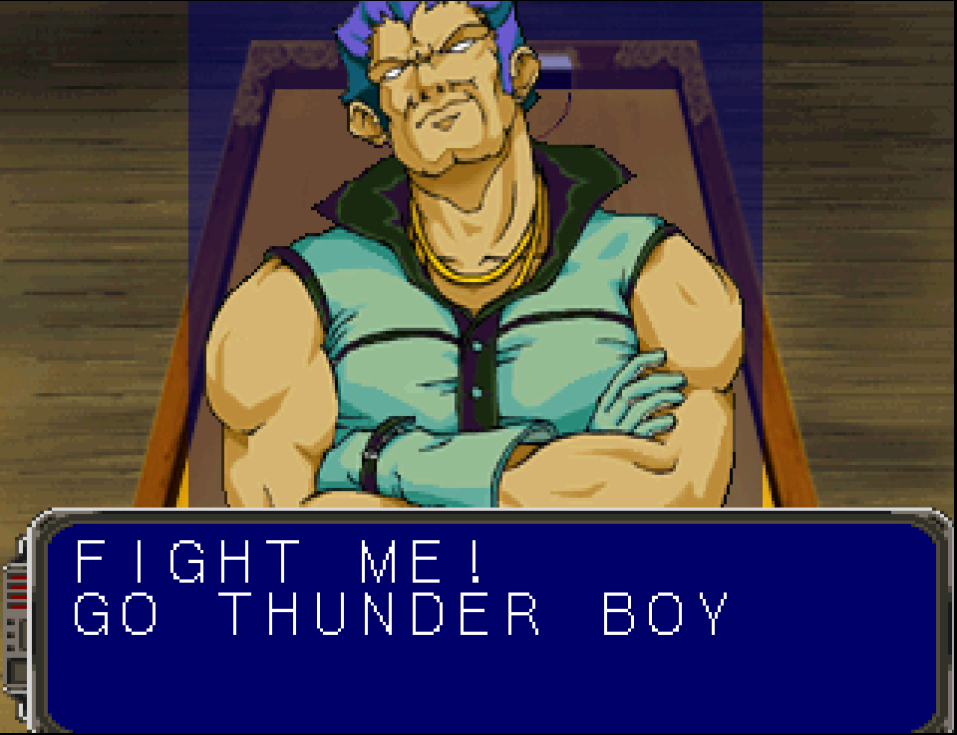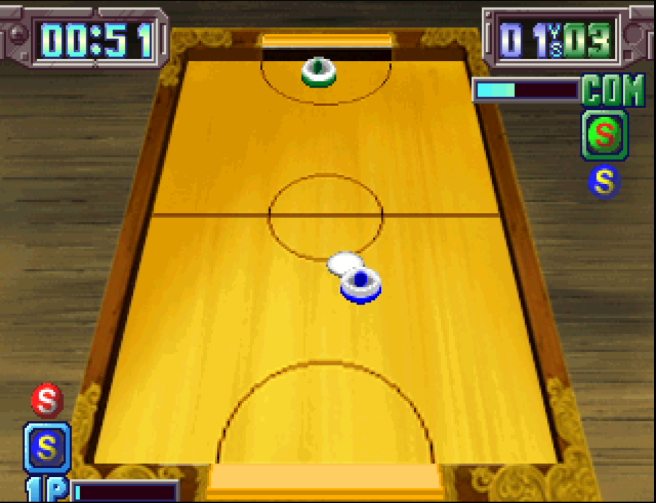 The game makes a big song and dance about picking your ‘character’ - a choice of stock anime goons, and you exchange some trash talk with your opponent before throwing down in a high stakes game of, er, air hockey. There is the odd ‘powerup’ which introduces extra conditions like miniature tornados that change the puck’s direction randomly, but I don’t know if this particular bonus is supposed to help or hinder you.